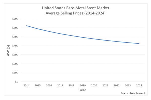 Similar to other medical device markets, a major factor impacting the interventional cardiology market is the consolidation seen in recent years. Large competitors are either entering the market for the first time or expanding their reach through strategic mergers and acquisitions. One trend that has arisen as a result of consolidation is the bundling of devices at a discount, which drives a decline in ASPs. Some of the major segments affected by this include stents and balloon catheters, which have both experienced steady price declines in recent years, as can be seen in the below chart on the bare-metal stent market.